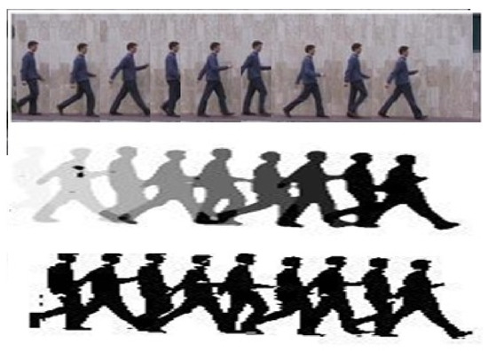 Work by Bobick and Davis [41] has had a tremendous effect on all future research on activity recognition. They created ‘Motion History Images (MHI)’ and ‘Motion Energy Images (MEI)’ from silhouettes that were integrated over the time domain (using frames’ information); see Figure 5 for a reference. MHI and MEI have been adapted and improved by many later works. Space-time volumes that a silhouette spans over in multiple frames were used in [42,43] as opposed to integrating the time-sequence into one image, as done by [41].