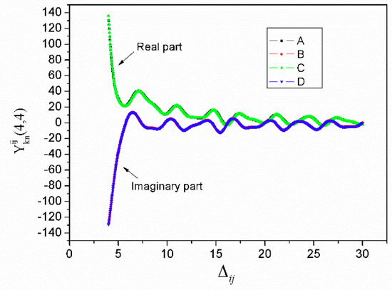 In the general case when the electrode number is greater than 100, could be larger than 200 for long transducer RF SAW devices. The integral of Equation (10) is an oscillatory integral, where the computation cost is proportional to the value of . When the scale of is larger than 1 × 104, the accuracy of the adaptive quadrature is poor.