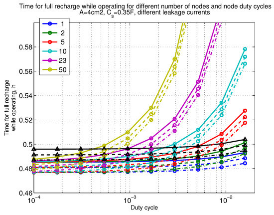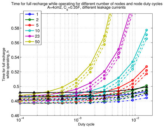 However, this is an exceptional case as typically the reloading is supposed to be taking place continuously during the operation of the transceiver. In addition, depending on supercapacitor charging scenario [18], the leakage current may be characterized by