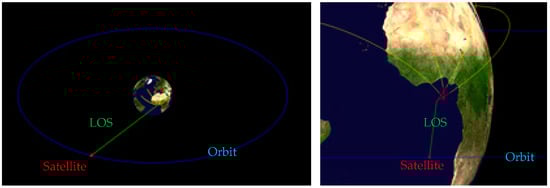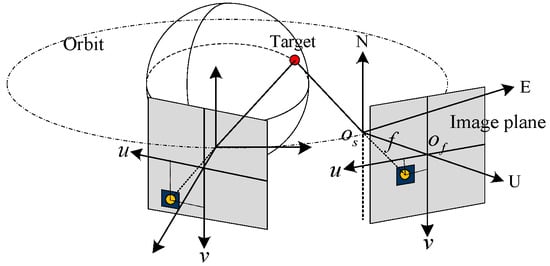 Three main types of errors exist in space-based infrared detection: time error, LOS (line of sight) error, and satellite position error []. The amplitude of the time error is relatively small, and it can be gradually smaller with continuous measurement. The LOS error is mainly caused by the instability of satellite attitude and the measurement error of infrared radiation. In addition, the measurement error can also be caused by the detector noise, infrared refraction, and attenuation. The ephemeris of the satellite is not real-time, thus the position of the satellite is not accurate.