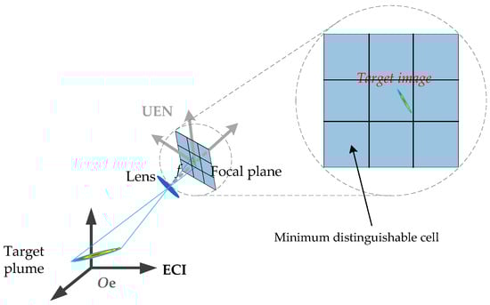 For point targets, the error of infrared radiation measurement is mainly due to pixel resolution. As shown in Figure 2, in space-based infrared detection, when the target is too far away from the detector, its image occupies less than one pixel on the focal plane. By measuring the coordinates of the pixels, the position of the image cannot be given more accurately. The data we can obtain is which pixel the target is in. Therefore, it is unwise to use the center of the pixel as the target image position.