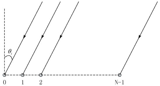 In this section, we consider a horizontal line array (HLA) with N sensors, uniformly spaced with a separation d. The signal from a narrow band source located at the far field of the array, with a look direction (see Figure 1), arrives at the array as a plane wave and is denoted by . is the signal strength; is the steering vector related to , defined by and ; the superscript T denotes vector transpose; j denotes the imaginary number; and denotes the noise vector.