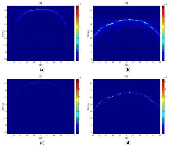 In this section, the performances of deconvolved beamforming and CBF are evaluated with the simulation data. The essential parameters of the simulation were as follows: the number of array elements M = 100, array element spacing , the half of wavelength, the signal frequency was 200 kHz.