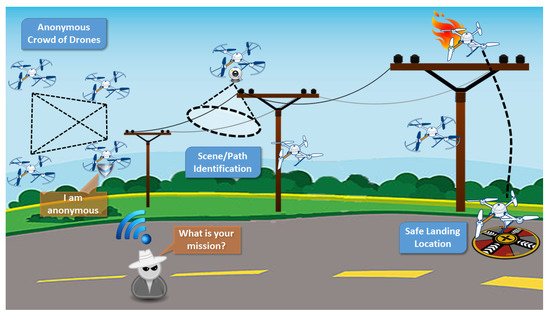 Current solutions for “user privacy” in “flying” things are focused on filters aiming to remove sensitive information. Most of these systems are based on computer vision analyzing video content [54]. In the case of mobile things, such as drones, since they can get close to targets and capture the same scene from different points of view, they are able to gather sensitive personal data, adding a new dimension to issues related with privacy and protection solutions. Several state-of-the-art privacy filters were introduced, aiming also to keep a balance between privacy issues and surveillance effectiveness. Privacy filters include simple filters such as pixelization, masking blurring, as well as more advanced morphing [55] and reversible warping [56] filters. Recently, several researchers [57,58,59,60] proposed new features and approaches for drone-based surveillance that affect visual privacy. Regarding the acquired audiovisual data, a number of approaches have been proposed that employ encryption techniques [61,62,63]. However, such techniques cause the corruption of large parts of the original image, making the intelligibility task practically impossible. Other solutions use reversible scrambling applied in the compression-specific domain of a particular video format [64,65,66], improving the visual result, but heavily depending on the employed compression algorithm.