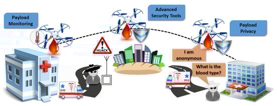 The applications of unmanned aerial vehicles (UAVs) are diverse, including areas related to civilian, military, commercial, and governmental sectors [1,2,3,4,5]. Examples include environmental monitoring (e.g., pollution, health of plants, and industrial accidents) in the civilian sector. In military and governmental areas, we mainly have surveillance and delivery applications aiming to acquire or provide information at locations after a disaster or attack, and to distribute medicine or other essential items. Commercial applications are focused on delivering products and goods both in urban and rural areas. UAVs, since they are dependent on sensors, antennas, and embedded software, are considered as part of the Internet of Things, providing a two-way communication for applications related to remote control and monitoring [6].