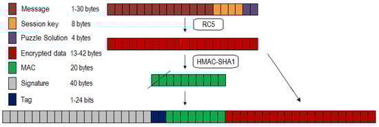 - Grover, K.; Lim, A. A survey of broadcast authentication schemes for wireless networks. Ad Hoc Netw. 2015, 24, 288–316. [Google Scholar] [CrossRef]