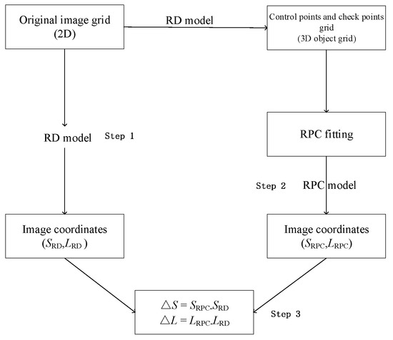 - Determination of an image grid and establishment of a 3D object grid of points using the RD model;