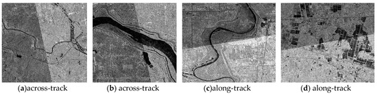 - Toutin, T. Spatiotriangulation with Multisensor VIR/SAR Images. IEEE Trans. Geosci. Remote Sens. 2004, 42, 2096–2103. [Google Scholar] [CrossRef]
