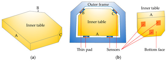 The design conception for the instrumented working table with integrated sensors. (a) Inner table, (b) assembled table.
