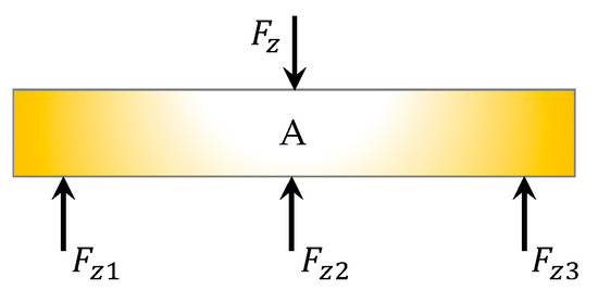 As shown in Figure 5, on the bottom face of the table, there are three sensors used for forces sensing in the Z direction. Since sensors on other planes do not have components in the Z direction, there is no coupling in the Z direction, and the force can be expressed as