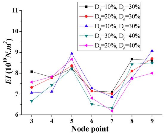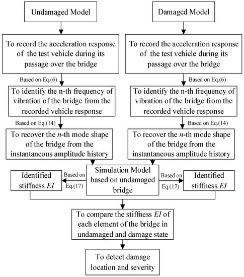 - Calculate the stiffness EI using the n-th frequency and corresponding mode shape for the bridge, based on which the structural damage is detected.