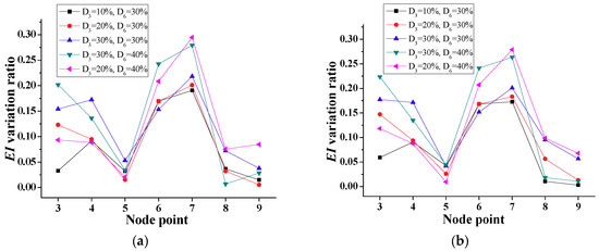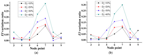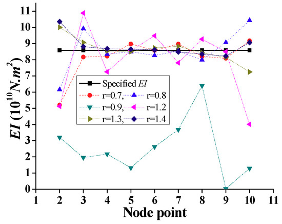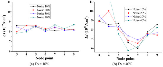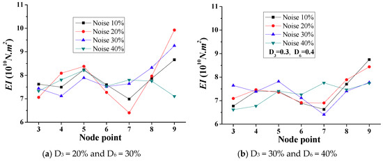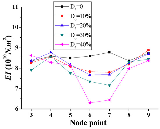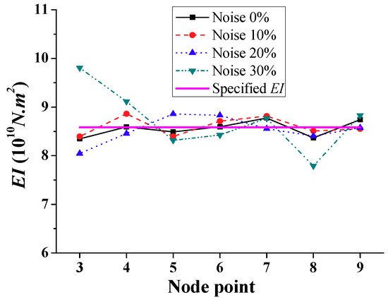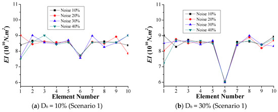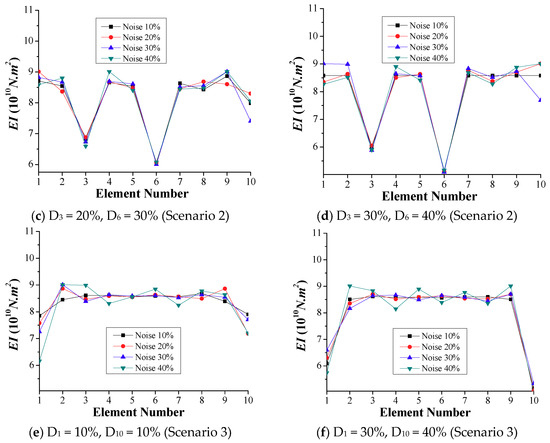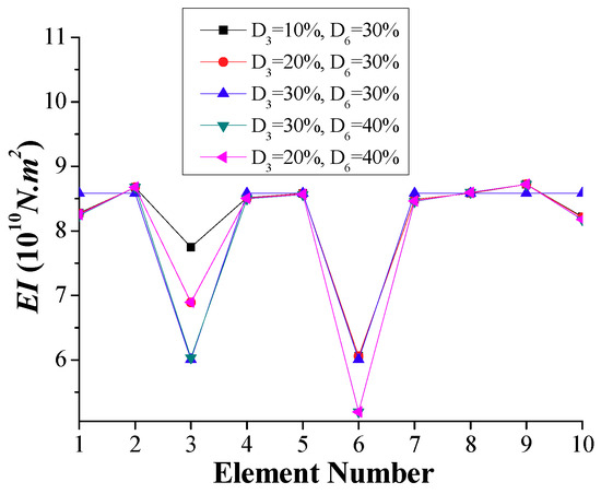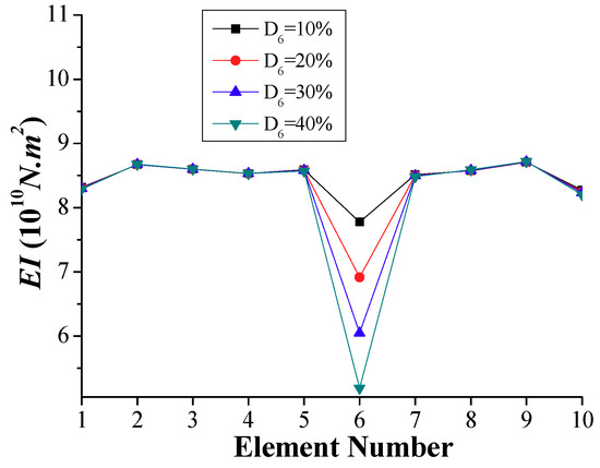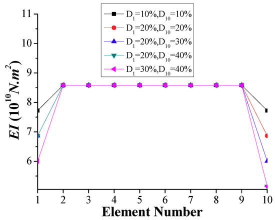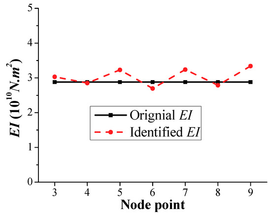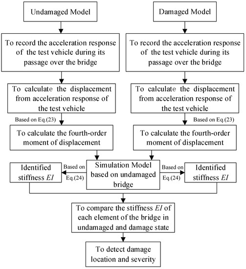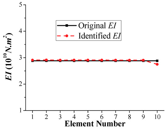 - Substituting and into Equation (24), the vector collecting the structural stiffness values of all of the elements of the FE model of the bridge can be identified by the constrained nonlinear least-squares method for the undamaged and damaged states.