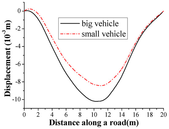 - The actual statistical moments of the measured displacement responses of the test vehicle with the undamaged and damaged states, , are estimated using Equation (23).