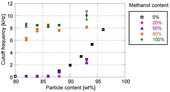 Cutoff frequency related to methanol content for particle/dye solution.