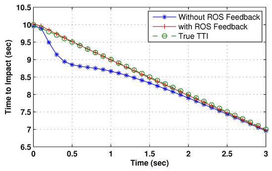 Target dynamics are represented is a similar manner as in Section 2. However, in order to measure the performance of the targeted platform’s tracker with and without assisted track initialization, the target state and Time to Impact (TTI) were estimated. Resultant velocity is computed from the estimated state vector and can be mathematically written as: