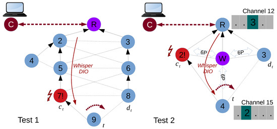 In practice, a Whisper controller controls the IoT network by disseminating misleading information on purpose, or that enables the controller to “impersonate” other nodes. When receiving such messages, receivers are persuaded to change their next-hop and manage the wireless resources accordingly. We demonstrate that Whisper works on already established routing and scheduling protocols designed for IoT networks without modifying them neither adding additional software in the devices. Namely, our implementation works on top of the Routing Protocol for Low-power and lossy networks (RPL) [4] and 6TiSCH [5], an industrial IoT open standard for running IPv6 in the Timeslotted Channel Hopping (TSCH) mode of IEEE 802.15.4e (one vendor alone reports over 39,000 TSCH networks deployed, which is over 10-Billion operating hours [6]). While RPL are widely used, proprietary scheduling protocols may be run in industrial deployments instead of 6TiSCH. We strongly believe that Whisper can be easily extended to RPL based proprietary technologies, subject to syntactic changes in the messages sent by the Whisper controller.