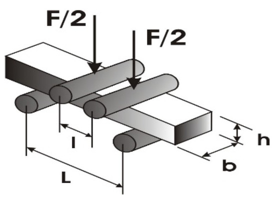 Piezoresistive characteristics’ analysis of the samples was performed with a Keithley meter scanner. The width and height of the sample were 24 and 0.5 mm, respectively. The distance between the acting force points was 42 mm and 24 mm, designated as L and l. All of the different binders had the same Young’s modulus of 350 GPa. According to Figure 2 given above, the following experimental data were obtained and are presented in Table 4.