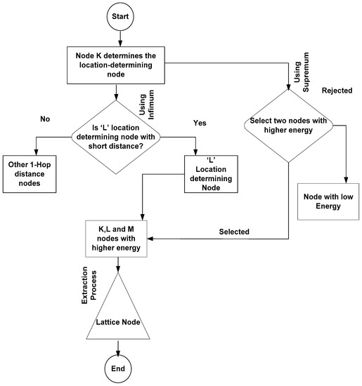 In Figure 2b, the final lattice node is the one that satisfies both conditions of supremum and infimum. If the sensor node ‘K’ is already proved with maximum energy (supremum), then this claim can furthermore be satisfied using Theorem 1.