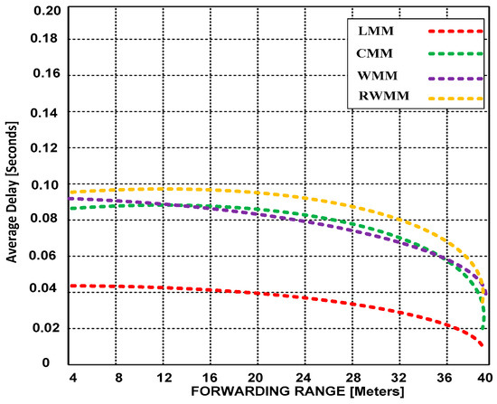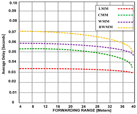 Figure 9 presents the moving times of the sensor nodes using the LMM and the other mobility models at different velocities. The LMM outperforms the other mobility models; it is scalable because the locations and the distance between the moving sensor nodes are easily determined, and the motion only marginally increases the time required to change positions.