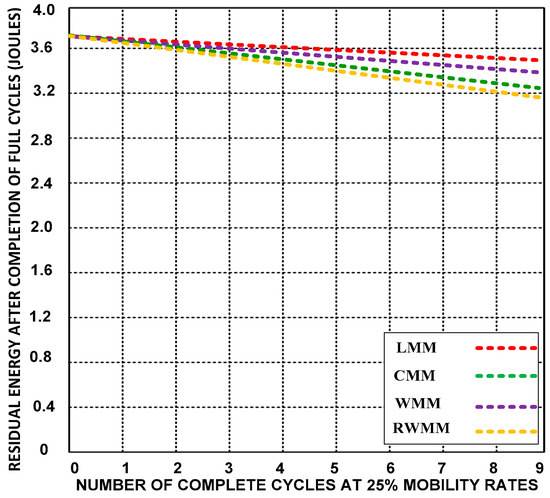 Residual energy after completion of the ninth cycle at 25% mobility rates.