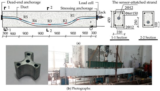 This experiment in this study has two main purposes: to verify the applicability of the LFBG sensor to measure the prestress of a tendon and to investigate the accuracy of the proposed calculation method of prestress loss. In order to correspond to the proposed prestress loss monitoring methods in Section 3, this experiment includes two parts: pre-tensioning test and post-tensioning test.