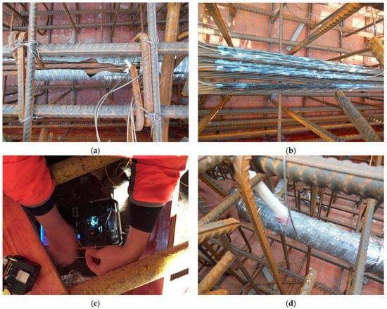 Moreover, all LFBG sensors were installed by the installation method proposed in Section 2.3. Figure 11a–d show the whole process of sensor placement.