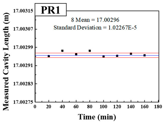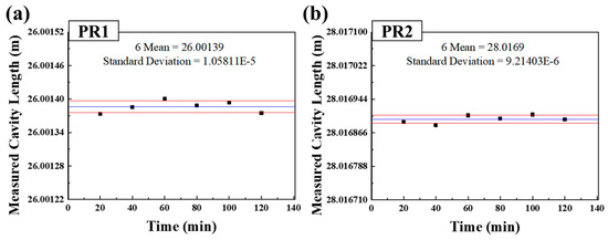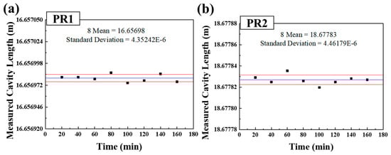 Length measurement stability results of (a) PR1 and (b) PR2.