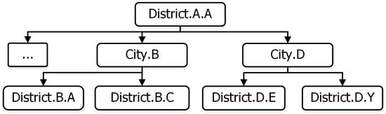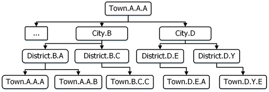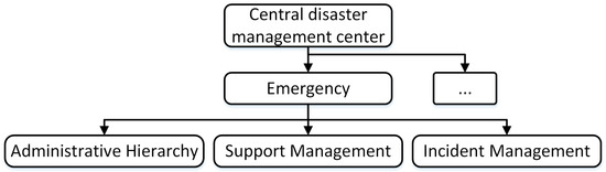 Administrative management information identifies the exact geographical location and represents the administrative hierarchy units. Figure 5 presents an example of hierarchical administrators at the country level. It includes the geographical administrative units following town, district, and city (province) level. It helps to identify the exact location where an incident occurs to mobilize the team to deal with the incident.