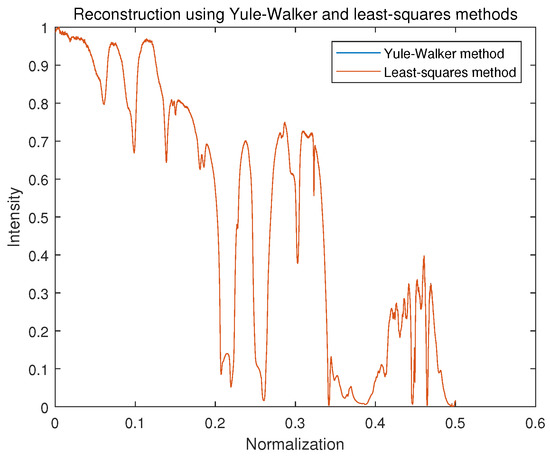 Spectrum reconstruction using the Yule–Walker method and least-squares method.