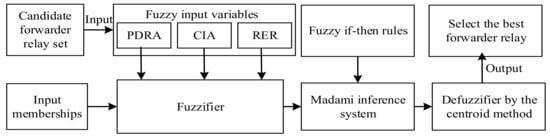 The fuzzy logic-based forwarding relay selection scheme.