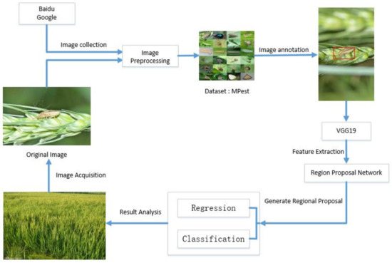 - During the first stage, VGG19 [20] is adopted, which is a deep network consisting of 19 layers to extract high-dimensional features from insect images, as well as RPN, which combines highly abstracted information trained to learn the actual locations of insects in images;