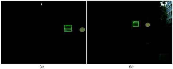 Video sequences were recorded with the industry camera introduced above to better reflect the results of the proposed algorithm under different circumstances in the applications of a CMOS-based VLC system. In the experiment, white, green, blue, and red LEDs were used to record three different videos, corresponding to the three channel models which have been introduced in 2.1. Because the proposed algorithm does not involve background modeling, such as background subtraction or a frame difference method, the three channel models are actually the same when applying our algorithm. The transmitter simulates the traffic light and the receiver, which is an ROS robot with a computer with the industry camera, simulates a moving vehicle. In the video recordings, different interferences were added, including occlusion, background interference, etc., to test the performance of the proposed algorithm in the round.