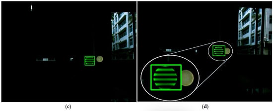 Visible light provides not only illumination but also communication, which is called visible light communication (VLC). Many applications based on VLC have been developing such as intelligent public illumination [1], indoor communication [2,3], indoor positioning [4,5], intelligent transport systems [6,7], etc. Some studies also combine VLC with other communication techniques. In Reference [8], characteristics of WiFi and VLC are described, and a practical framework is demonstrated for both technologies to coexist, further enhancing the communication performances. In the VLC field, most of the studies are limited to indoor and the outdoor applications are less explored [9]. A VLC system mainly includes two parts: a transmitter and a receiver. The transmitter modulates the Light Emitting Diode (LED)-produced light and the receiver, based on a photodiode (PD) or an image sensor, extracts the data signal from modulated light beam. A PD-based VLC system realizes communicating by receiving the light intensity of different LEDs, it costs less, and has a fast response time, which makes it possible to measure a small period of time of signal arrival; however, the main flaw of PD is that it is not stable enough, especially in an outdoor environment. In our previous works [10,11,12,13,14], we have completed a series of research projects regarding VLC-based on PD, and it can be found that PDs are sensitive to the direction of the light beam and the interference of the background light or the reflection of the surrounding objects, the communication based on PDs would be affected and even fail. Therefore, for the weakness of PDs mentioned above, an image sensor performs better in the field of OVLC applications.