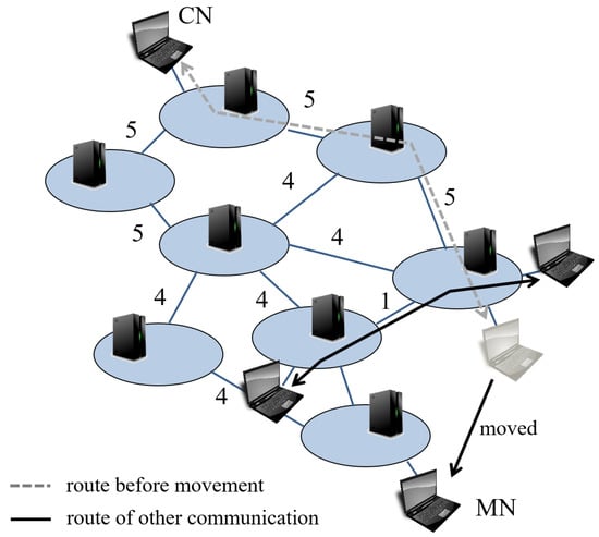 To overcome this issue, mobility management has attracted attention. Mobility management keeps communications alive between an MN which moves across network domains and its corresponding node (CN) connected. To realize mobility management, Internet Engineering Task Force (IETF) standardized Mobile IP [4,5,6]. Mobile IP enables MNs to communicate continuously while moving across network domains and it is widely used. However, there is a problem if we want to optimize route after moving. Mobile IPv4 lacks route optimization function. This might cause a communication delay and uncomfortable use of ICT services for the users due to lengthy routes. Moreover, an MN needs a specific function to use Mobile IP. Therefore not all the MN users can use Mobile IP and maintain seamless and continuous communication. Mobile IPv6 has a route optimization function but a user’s node has to have the function in addition to Mobile IPv6 and it is optional.