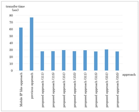Experiment result: Data transfer time in Experiment 1.