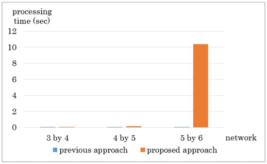 As a reference, the default number of times TCP retries to retransmit a data before it disconnects its session is five, and the minimum Retransmission Time Out (RTO) is 0.2 s. for Linux. RTO is doubled after each retransmission hence the time limit for changing a route is approximately 6 s minimum. As this is a theoretical value and not a real value, we take this value for reference. In a scenario where the time-out limit is 6 s., the proposed approach cannot finish changing route before the time-out limit in the 5 by 6 network.