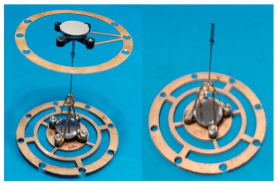Other highly sensitive sensing devices with high response speeds have been adopted in the probe design. PTB developed a microprobe on the basis of a microfabricated silicon membrane, whose position was measured using diffused piezo-resistive sensors []. The system allowed measurement forces in the range of few micro-Newtons. The horizontal and vertical stiffness was approximately 2 mN/µm and 48 mN/µm, respectively. The approximate design of the contact probe that used piezo-resistive sensors typically required an elastic element with methods of microsystem technologies, such as the probe designs from the Braunschweig University of Technology in Germany [,], Eindhoven University of Technology in Netherlands [,], and Tianjin University in China []. On the one hand, the stiffness of the suspensions in these probes is limited by the manufacturing tolerances, and it is difficult to achieve equal stiffness in all three axes in practice. On the other hand, the resolution can be improved, but the cost will be high. NPL (National Physical Laboratory, London, UK) developed a microprobe that had a light structure and low probing force [,]. The motion of the probe tip was sensed by capacitive sensors. The high resolution of capacitive sensors can be exploited in the probe design. However, nonlinearity emerges during the measuring process, and the measurement range is limited. METAS (Federal Institute of Metrology, Bern, Switzerland) adopted an alternative approach that exhibited perfectly isotropic probing forces through a monolithic spring box mechanism with flexure hinges [,]. The movement in each direction could be measured using an inductor sensor. The stiffness was 20 mN/mm, and the repeatability was approximately 5 nm. The detection principle by using a vibrating element as the sensing device could also be adopted in the probe design, such as the UMAP (Ultrasonic Micro and Accurate Probe) developed by Mitutoyo Corporation [,]. The repeatability of the probe was reported to be 0.1 µm, which became commercially available. The NPL also proposed a probe using a three-legged elastic mechanism with two piezo drives to generate vibrations [,]. Thus, the amplitude of vibrations could be sensed by a piezoelectric sensor. The contact force of the vibrating probe was much lower than other normal probes.