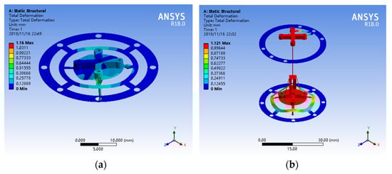 Simulation results when a 1 mN force is applied to the probe tip: (a) in horizontal; (b) in vertical.