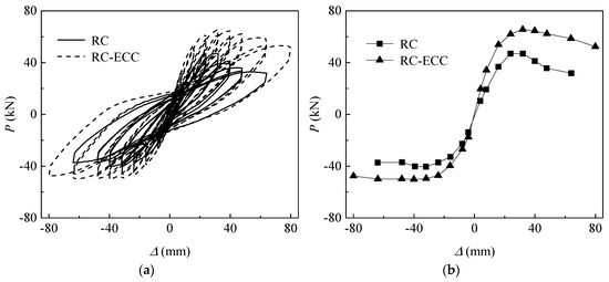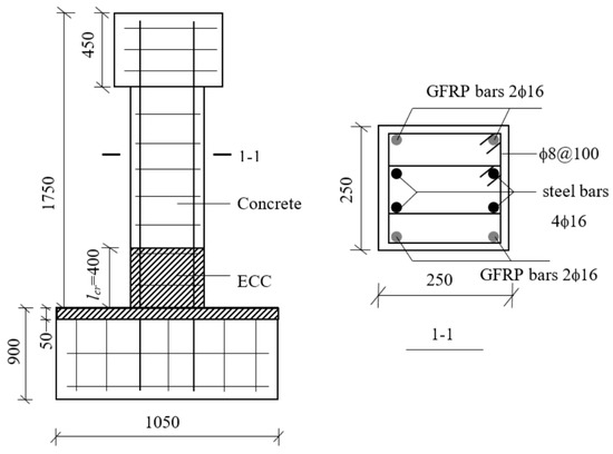 - With the substitution of ECC with concrete in the plastic hinge region, the load carrying capacity, ductility, and energy dissipation capacity of the hybrid steel—FRP-reinforced column increased by 39.62%, 73.44%, and 72.46%, respectively.