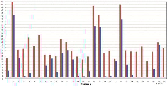 Here, n is the total frame number of a movie. This feature is the average value of the feature in a movie. We also regard it as the specific feature value of a normal event or a prototype. Then, we calculate two variances in Equations (4) and (5).
