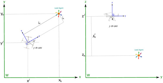 Let consider a range sensor, from which measurements of the relative distance of the j-th quadcopter respect to the lead agent can be obtained. Therefore, it is defined: