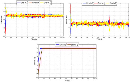 Figure 14 shows the evolution of the error with respect to the desired values which define the flight formation.