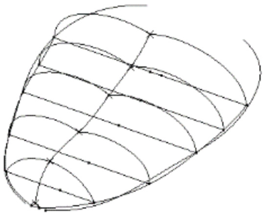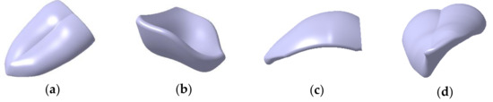 First, considering the difference in the tongue shape between people, we selected 10 volunteers (five males and five females) and observed their four representative tongue movement states including the tiled state, sunken state, raised state, and overturned state of the tongue, respectively, during the chewing process. The tongue states were photographed by using a ZED binocular stereo camera. The multi-section curve of the tongue shape was drawn, and the normal specification of the multi-section section was obtained by using the ruler method to carry out the proper specification. The digitization models of four tongue states were produced by contour multi-section modeling and the guide lines. In the CATIA V5 R20 software, a 3D parametric modeling method was used to extract the surface data of the tiled, sunken, raised and overturned states of the tongue. The parameters recorded were the width of the tongue section d, the height of the tongue midpoint h, round at both ends r1, the round of the midline point r2. The mean value of each parameter is shown in Table 1.