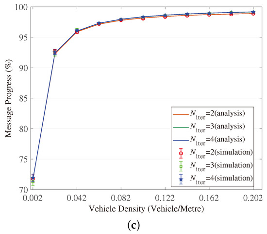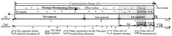 where and are the average vehicle numbers in other segments in the message dissemination direction and in the i-th segment of the j-th iteration, respectively. Note that and are the function of the parameters of and .