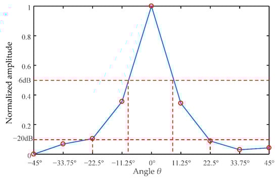 where g(θ) is a directivity function of the transducer, which is expressed as Equation (4), J1(x) is a first-order Bessel function. k is a constant corresponding to different degrees of attenuation (for example, −3 dB, −6 dB, or 12 dB), a is the radius of the ultrasonic wafer. If a circular piezoelectric wafer is taken as an example, half the diffusion angle θ can be calculated by Equation (6):