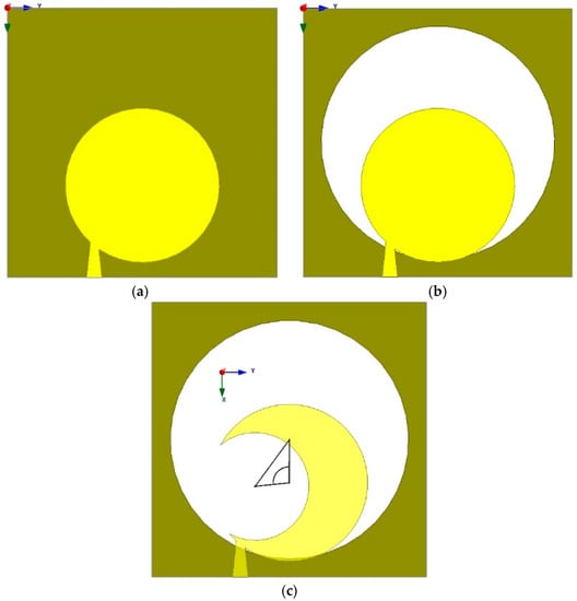 - Hu, B.; Shen, Z. Broadband circularly polarized moon-shaped monopole antenna. Microw. Opt. Technol. Lett. 2015, 57, 1135–1139. [Google Scholar] [CrossRef]