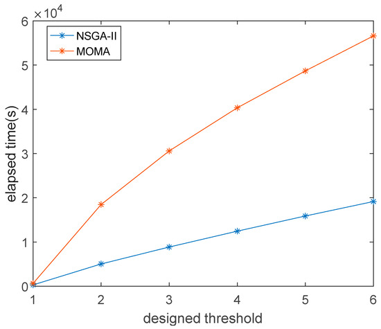 | Designed Threshold | Solution No. | Sensor No. (NSGA-II) | Sensor No. (MOMA) | ||||||||||