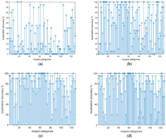 - When there are four sensors, the identification accuracy of the first non-inferior sensor network is 76.95%, and the recognition accuracy of the second non-inferior sensor network is 75.55%. Results show that when the number of sensors is constant, the accuracy of impact recognition will be correlated with the sensor network optimization performance index. The experiment shows that the optimized sensors network can achieve the best impact recognition accuracy;