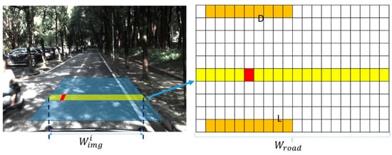 where  is the range of the pitch angle. In order to distinguish a wider noise marking that is  times the width of the true lane marking, the row number of the marker point in the image should meet the condition: