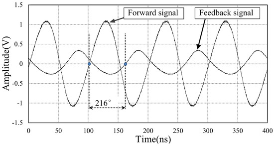 The initial state of the forward signal and feedback signal, where the phase difference is .